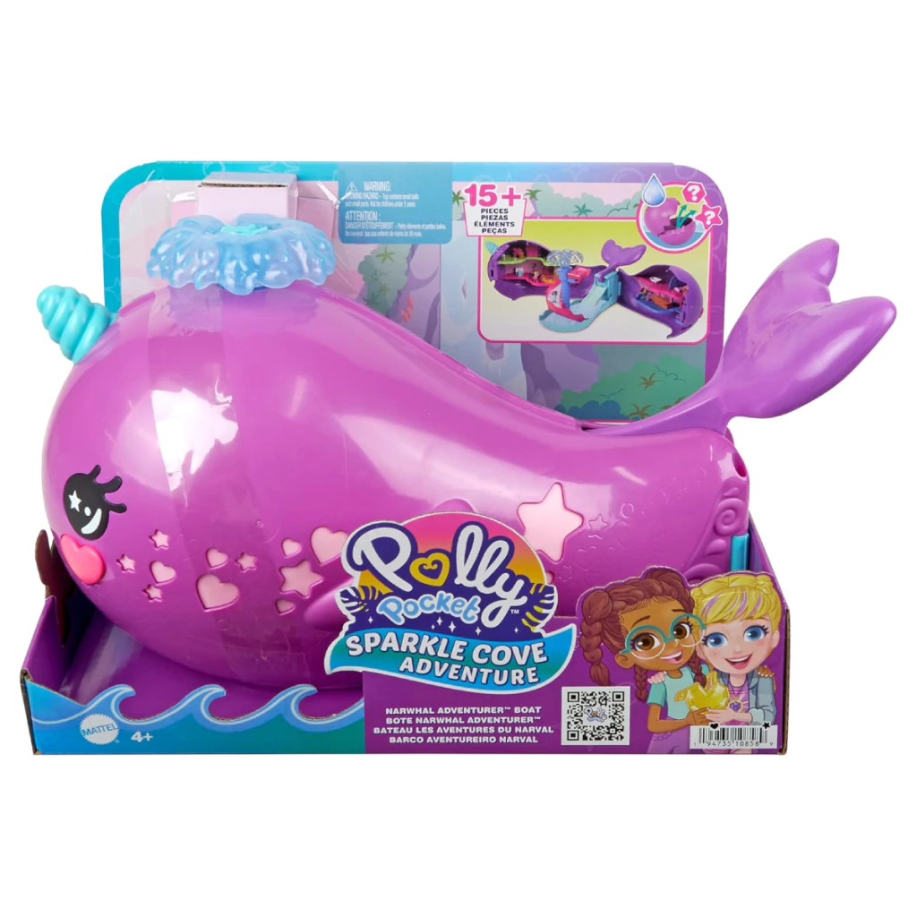 O Barco Aventura em Sparkle Baía Mágica Polly Pocket (modelo HKV71 da Mattel) é um conjunto de brinquedo que proporciona aventuras emocionantes em alto-mar. Este conjunto inclui um barco em forma de narval com detalhes encantadores e duas bonecas da Polly Pocket, permitindo que as crianças criem diversas histórias e exploram o mundo mágico de Sparkle Cove. O barco possui características interativas que tornam a brincadeira ainda mais divertida e envolvente.