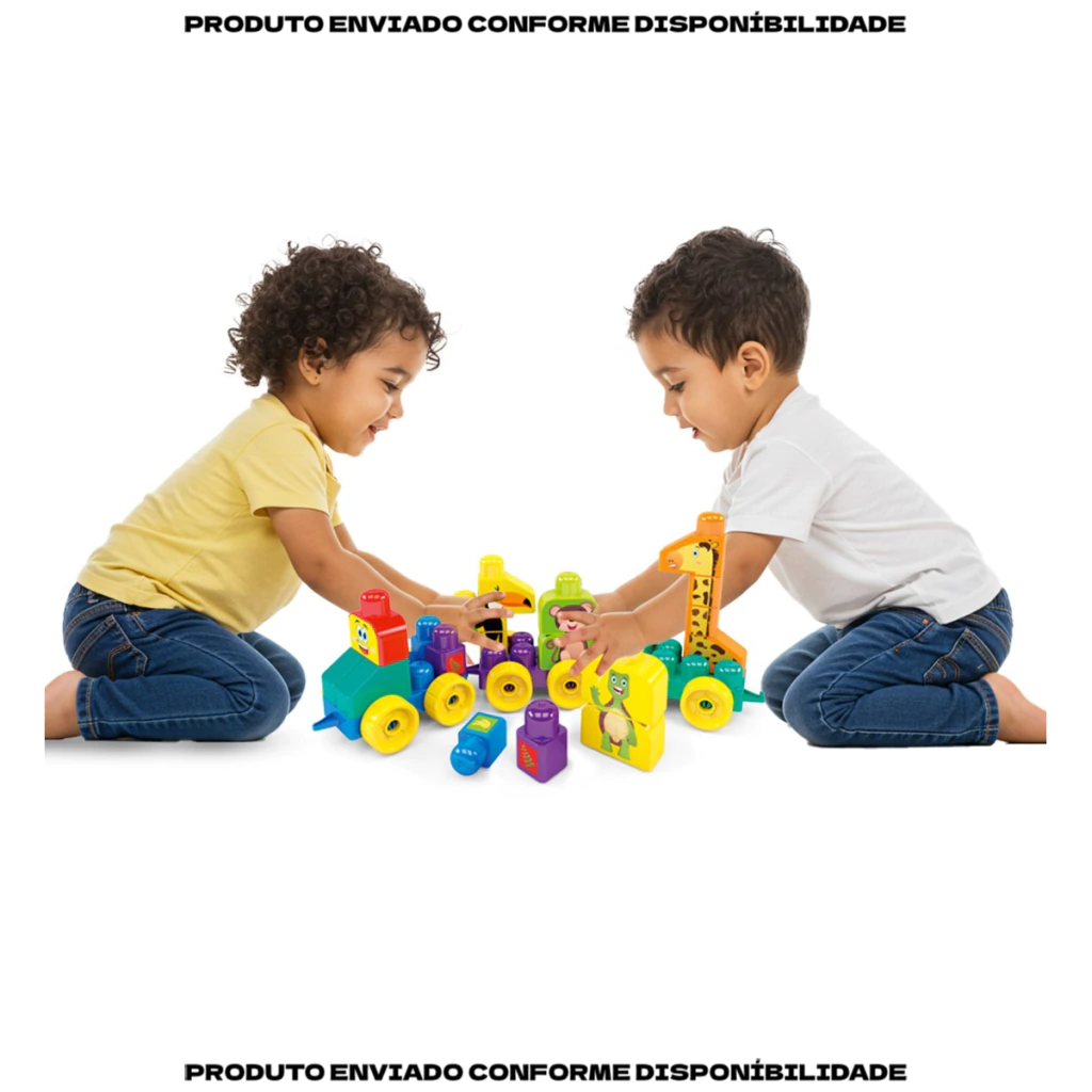 Com o Blocos de Montar Trem Puxa Zoo Dismat, a criança aprende brincando, desenvolvendo a imaginação e habilidades motoras enquanto se diverte com o trem e seus animais.
