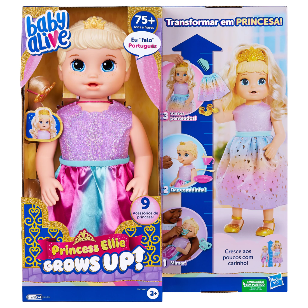 A Baby Alive Princess Ellie é muito mais do que uma boneca: é uma jornada encantadora de crescimento e imaginação que surpreende em cada etapa da brincadeira.