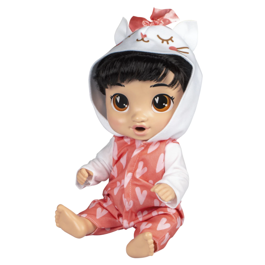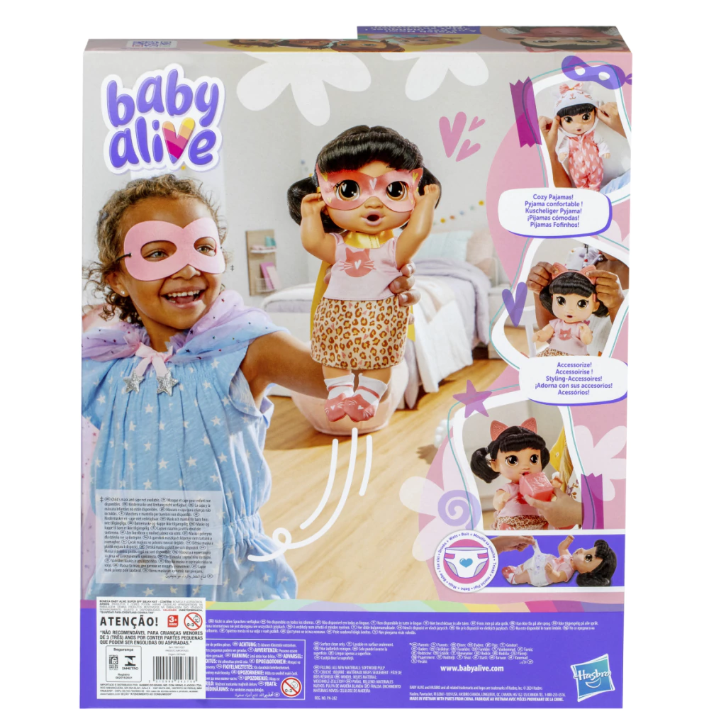 A Boneca Baby Alive Super BFF Katie Kat Hasbro F9851 é uma companheira cheia de estilo e diversão para as crianças. Com aproximadamente 28 cm de altura, ela vem com roupinhas temáticas de gatinha, incluindo pijama e fantasia de super-heroína, além de acessórios que estimulam o faz de conta. A boneca “bebe” na caixinha de suco e faz xixi, proporcionando uma brincadeira mais realista e interativa.