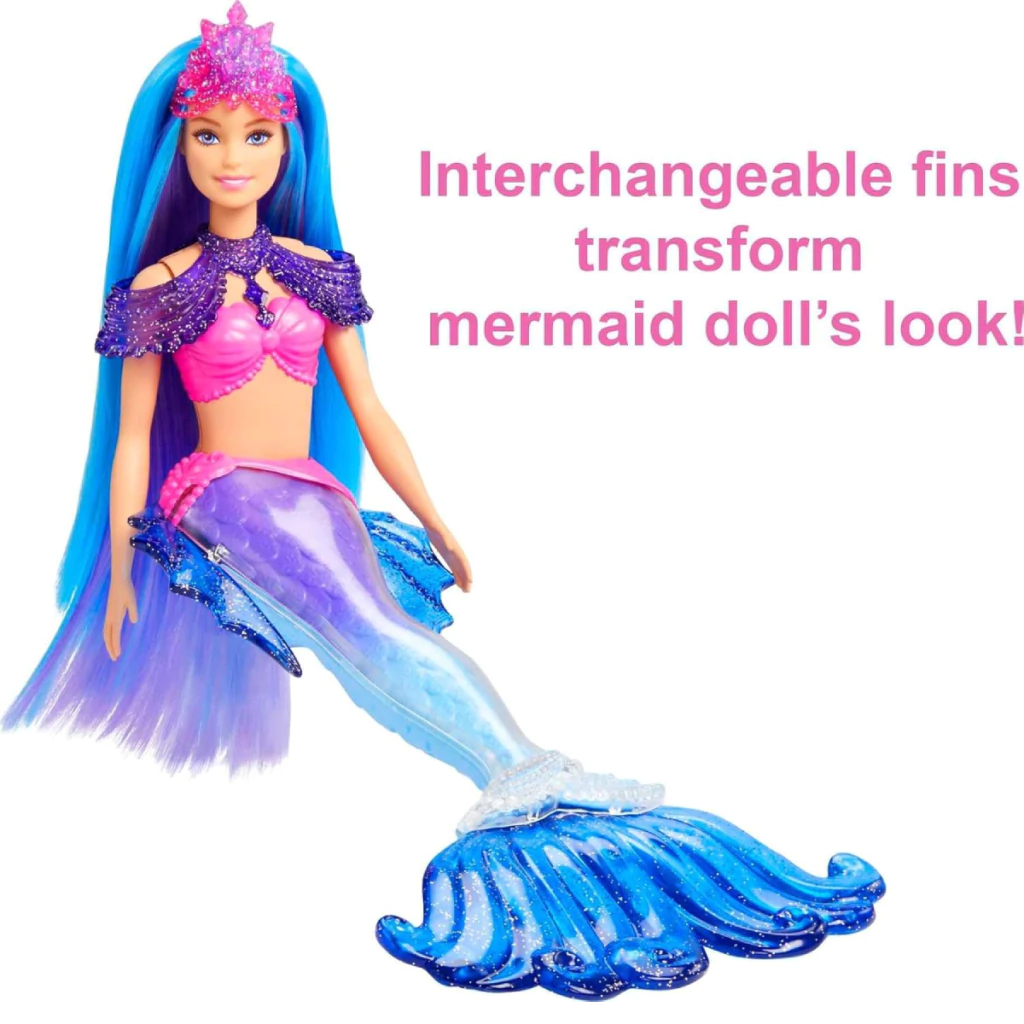 A Boneca Barbie Clássica Sereia Mermaid Power com Acessórios Mattel HHG52 traz a mágica do mar para a brincadeira! Com cauda translúcida que brilha à luz e cabelo longo para pentear, ela vem acompanhada de espuma de banho efervescente, pente, conchas decorativas e acessórios temáticos que flutuam e brilham na água. Perfeita para momentos sensoriais no banho ou piscina, estimulando criatividade e imaginação subaquática.