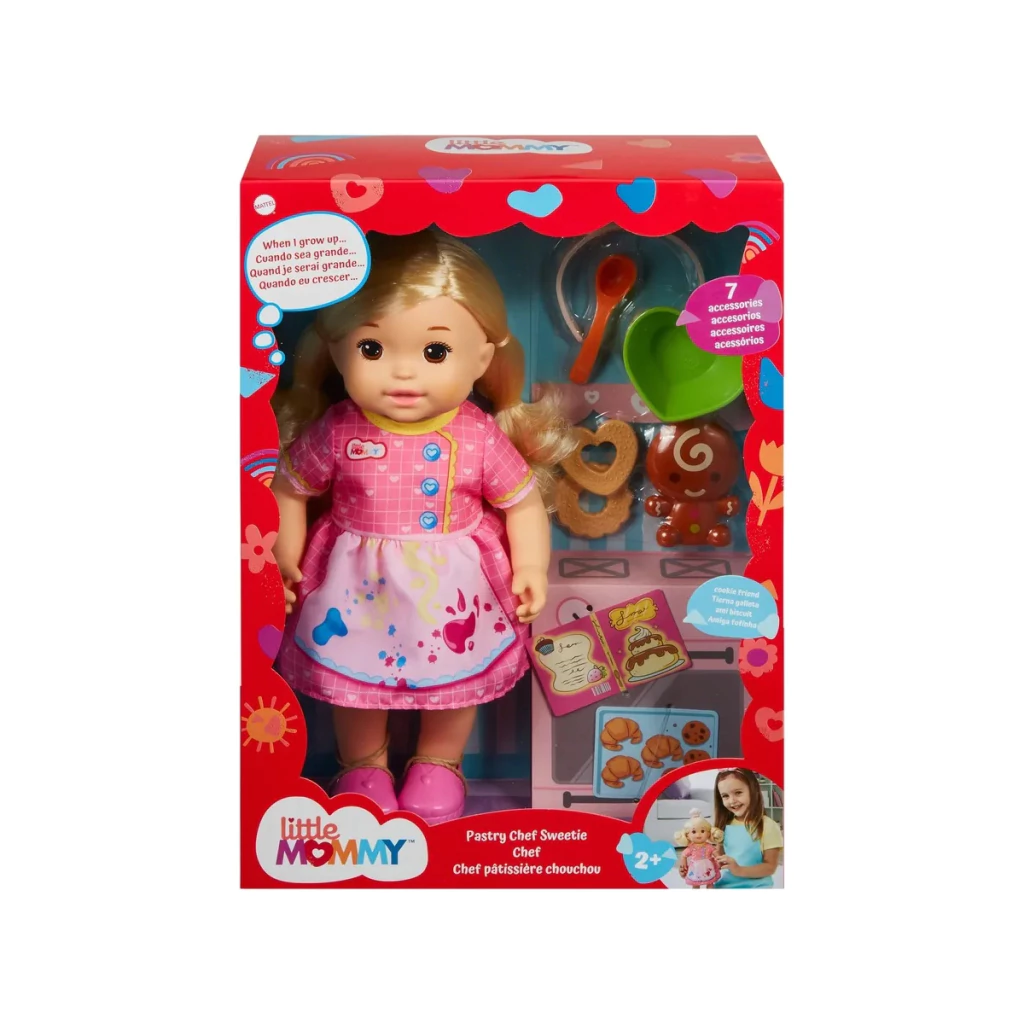 Com a Boneca Little Mommy Quero Ser Chef, as crianças podem brincar de cozinhar, aprender sobre profissões e se divertir criando histórias cheias de imaginação e cuidado.