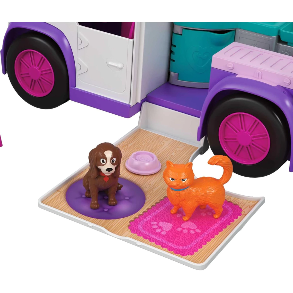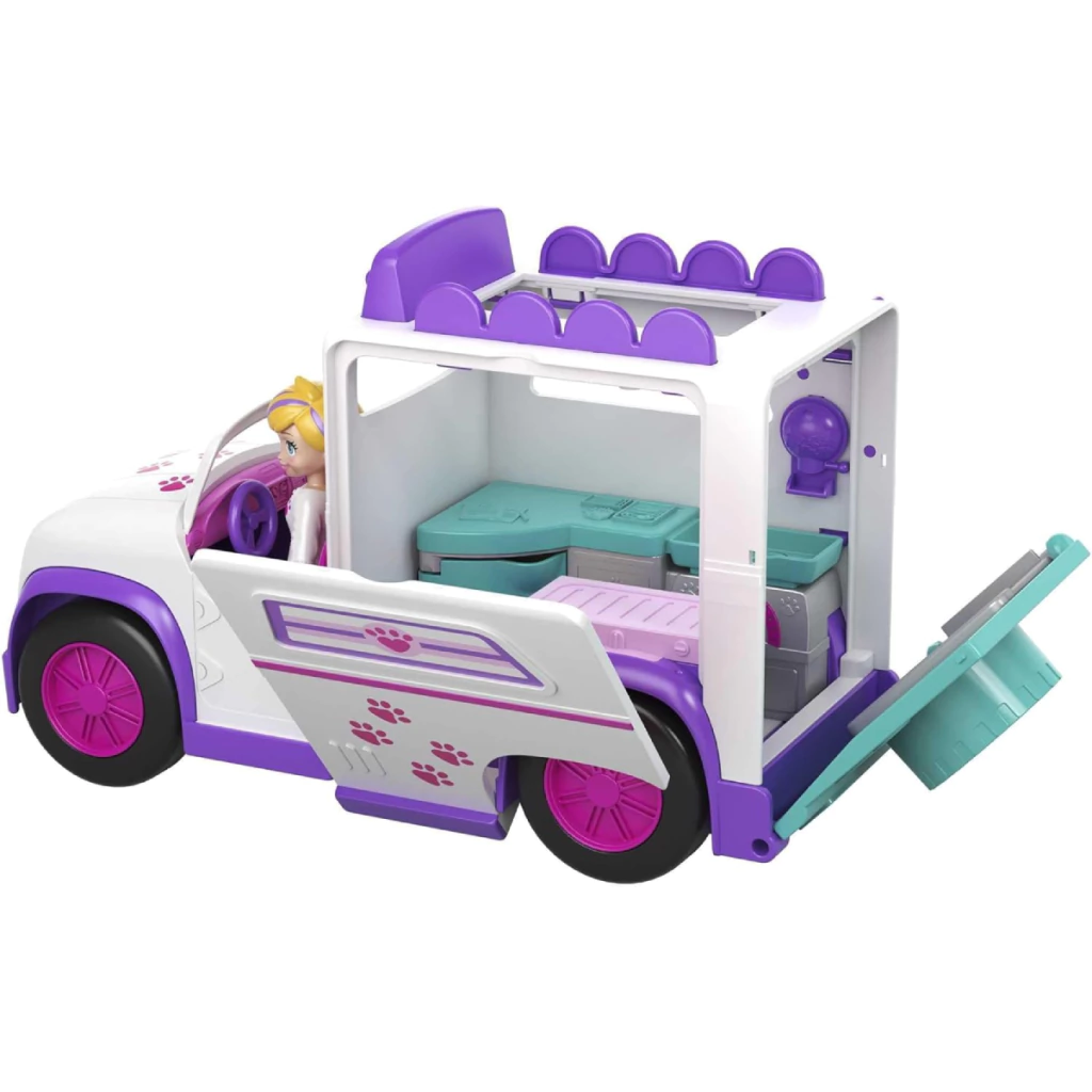 Com o Polly Pocket Hospital Móvel dos Bichinhos, as crianças podem viver aventuras cheias de carinho e diversão, cuidando dos pets em qualquer lugar.