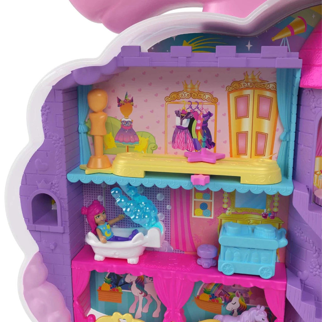 A Polly Pocket Micro Salão Unicórnio Arco-Íris é ideal para crianças que amam aventuras encantadas, moda e diversão em miniatura cheia de brilho!
