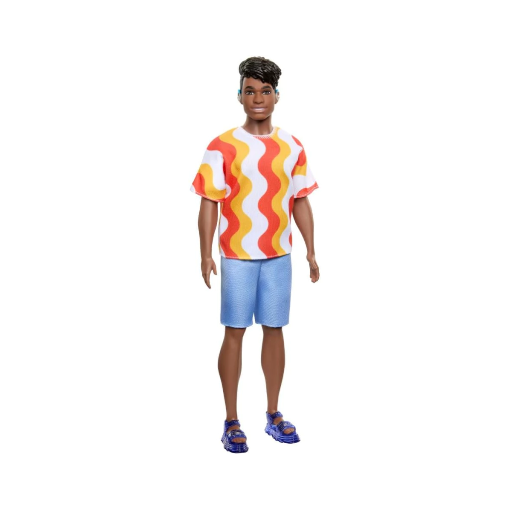 O Boneco Ken Fashionista Camiseta com Ondas e Shorts Azul da Mattel (modelos HRH23|DWK44) traz um visual moderno e descontraído para enriquecer ainda mais o universo Barbie. Com roupas estilosas e design atualizado, ele estimula o faz de conta e a diversidade nas brincadeiras, promovendo criatividade e expressão desde cedo.