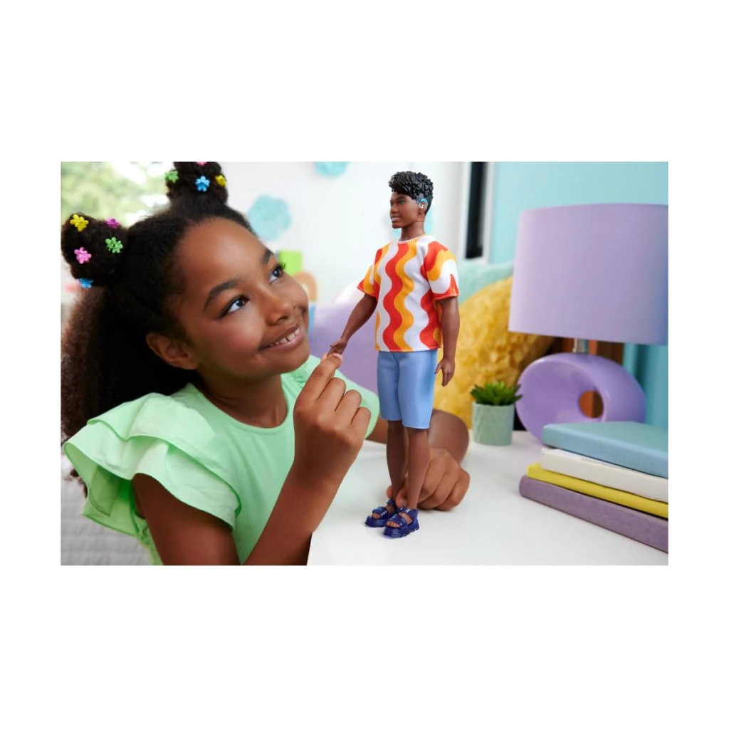 O Ken Fashionista Camiseta com Ondas é perfeito para quem busca um boneco com estilo autêntico e que estimula o brincar livre e diverso com o mundo Barbie.