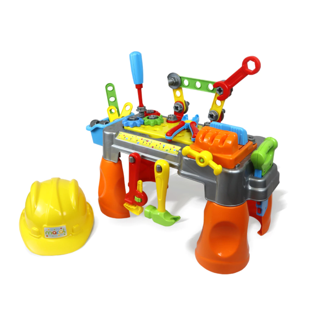A Bancadinha de Ferramentas com Capacete Maral 2019 é um brinquedo educativo e interativo que estimula a coordenação motora e a criatividade das crianças. Com design colorido e atrativo, a bancada acompanha 46 peças, incluindo ferramentas como martelo, chave de fenda, alicate, além de parafusos, porcas e engrenagens, proporcionando uma experiência lúdica que incentiva o aprendizado sobre diferentes profissões. Acompanha também um capacete de brinquedo para tornar a brincadeira ainda mais realista.