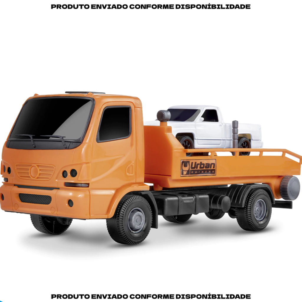 Com o Caminhão Plataforma Guincho Urban Sortido Roma 1430, as crianças podem criar aventuras empolgantes e se divertir resgatando veículos em suas brincadeiras!
