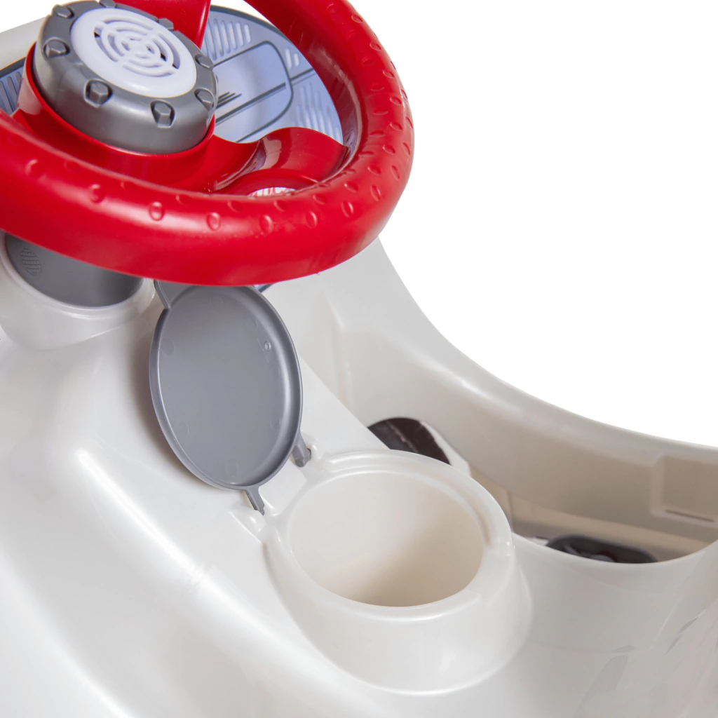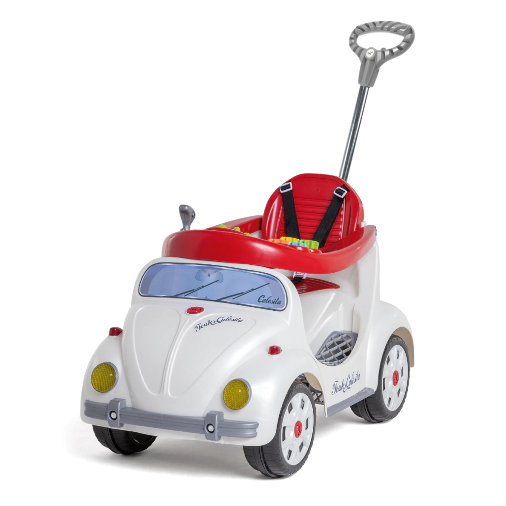 O Carrinho de Passeio com Pedal Fouks Branco Edition Calesita 0999 é um brinquedo 2 em 1 que oferece diversão e segurança para as crianças. Inspirado no clássico Fusca, pode ser utilizado como carrinho de passeio com empurrador ou como carrinho de pedal, acompanhando o crescimento da criança. Possui aro de proteção com atividades interativas, apoio para os pés, cinto de segurança de três pontos, buzina e painel interativo com peças em relevo, cores e formas que estimulam a curiosidade e o desenvolvimento motor dos pequenos. As rodas emborrachadas garantem maior aderência e evitam derrapagens, proporcionando passeios mais seguros.