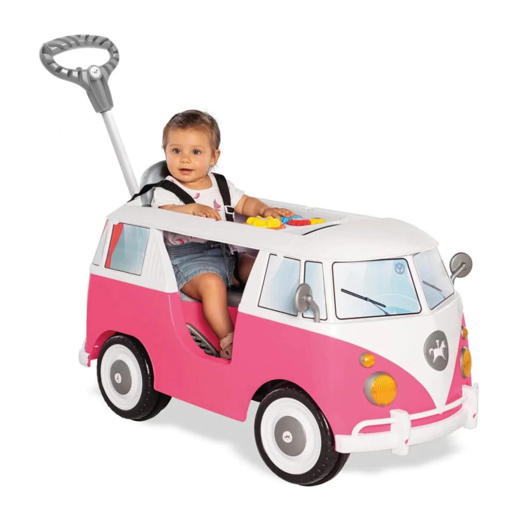 O Carrinho de Passeio Kombina Rosa Empurrador e Pedal Calesita 1030 é um brinquedo 2 em 1 que oferece diversão e segurança para as crianças. Com design inspirado em uma kombi, pode ser utilizado como carrinho de passeio com empurrador ou como carrinho de pedal, acompanhando o crescimento da criança. Possui aro de proteção, apoio para os pés, cinto de segurança, buzina e painel interativo com peças em relevo, cores e formas que estimulam a curiosidade e o desenvolvimento motor dos pequenos.