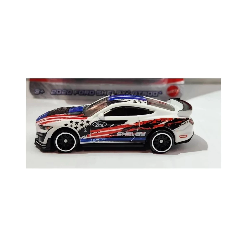 O Carrinho Hot Wheels Stars & Stripes 2020 Ford Shelby GT da Mattel (modelo HRW65/GRT01) traz o clássico muscle car americano com pintura patriótica em vermelho, branco e azul, chassis metálico e escala 1:64, ideal para colecionadores e crianças a partir de 3 anos.