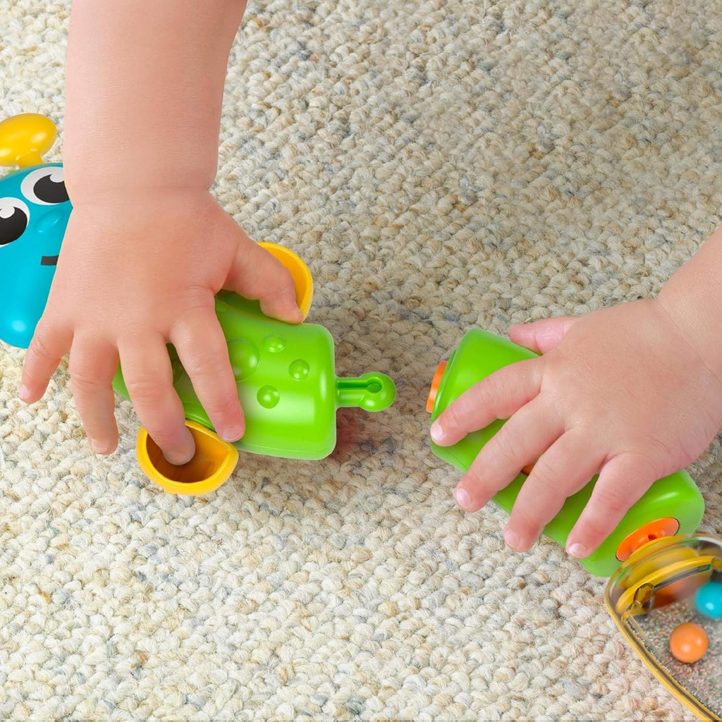 Com o Chocalho Lagartinha Encaixa e Solta Fisher Price, o bebê se diverte enquanto desenvolve habilidades essenciais de forma segura e alegre.