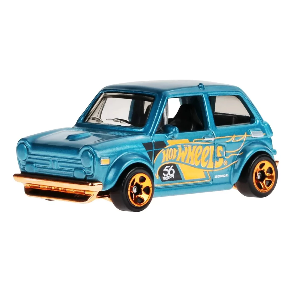 O Hot Wheels Custom '70 Honda N600, identificado pelos códigos HVW99-ND5104B|HDH54, é uma miniatura em escala 1:64 que homenageia o clássico subcompacto japonês. Parte da série comemorativa de 56 anos da Hot Wheels, este modelo apresenta um design personalizado com pintura metálica verde-azulada e detalhes dourados, sendo uma peça essencial para colecionadores e entusiastas de veículos clássicos japoneses.