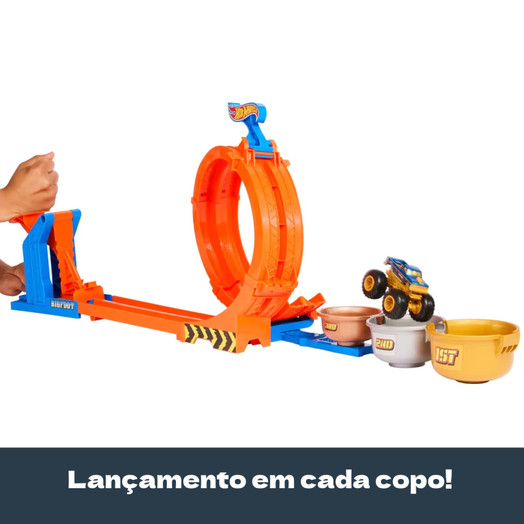 A Hot Wheels Monster Trucks Pista Troféu Big Foot Giros Extremos Mattel JBX64 é a escolha ideal para quem busca adrenalina e diversão em alta velocidade com manobras espetaculares.