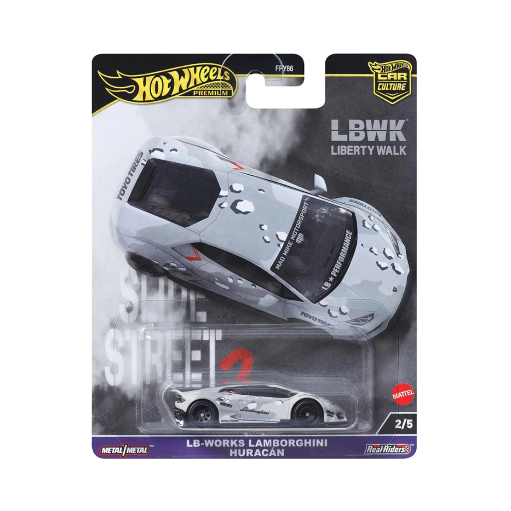 O Hot Wheels Premium Car Culture LB-WORKS Lamborghini Huracán, identificado pelos códigos HKC84|FPY86, é uma miniatura em escala 1:64 que homenageia o supercarro modificado pela Liberty Walk. Parte da coleção Slide Street da Hot Wheels, o modelo apresenta design ousado e detalhes excepcionais, tornando-se item essencial para colecionadores e entusiastas de carros esportivos personalizados.