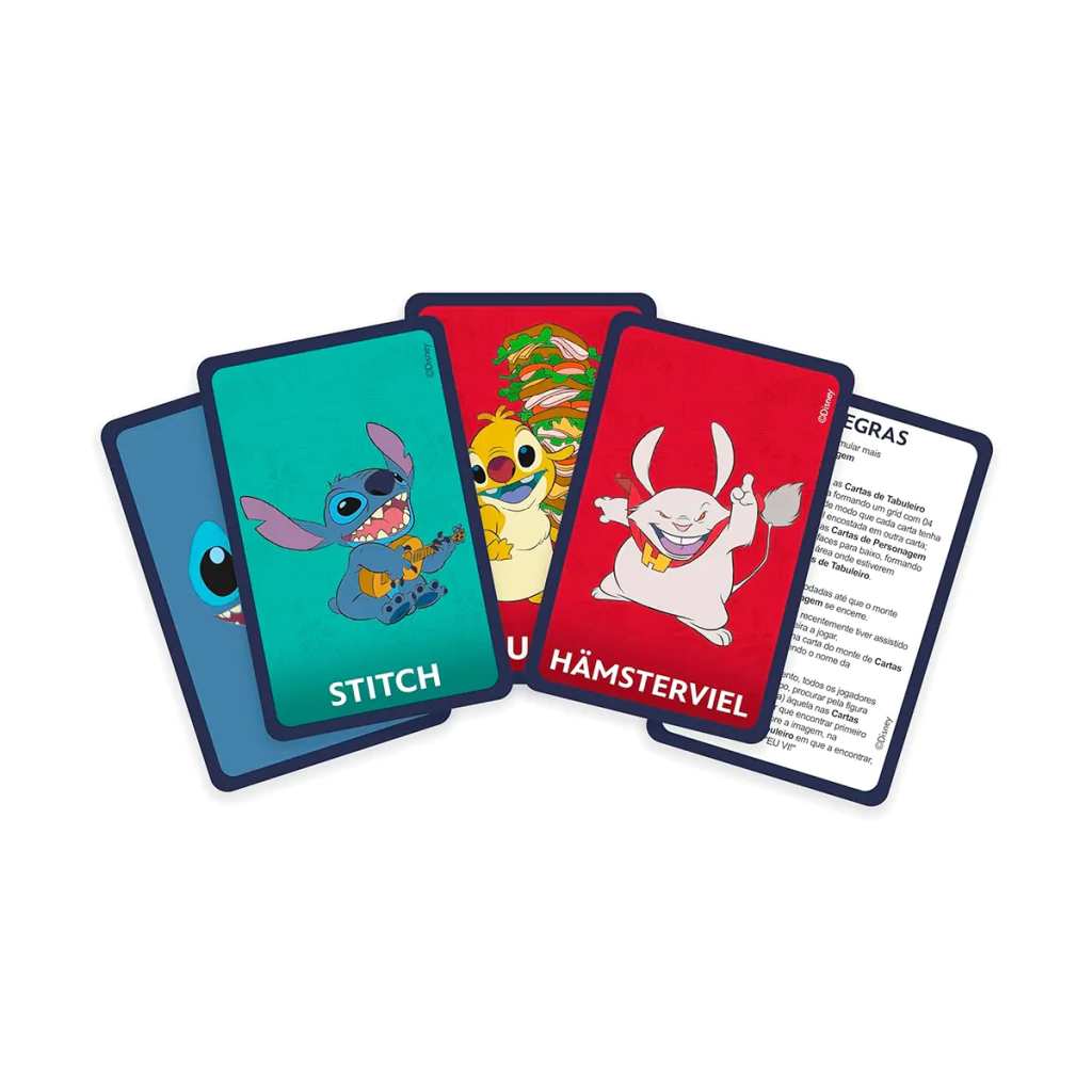 O Jogo de Cartas Eu Vi! Stitch Copag 34231 é perfeito para animar encontros, estimular o raciocínio rápido e divertir crianças e adultos com o carisma do Stitch.