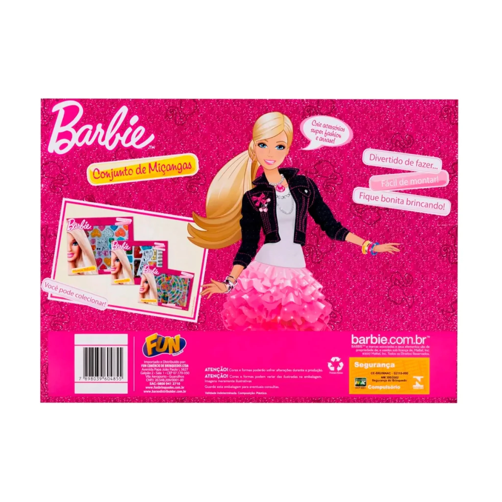 O Kit Conjunto com 100 Miçangas Barbie Fun F0015-2 é perfeito para crianças que adoram criar acessórios cheios de estilo e criatividade. Com miçangas coloridas e variadas, o kit permite montar pulseiras, colares e outros enfeites personalizados, estimulando a imaginação e as habilidades manuais. Inspirado no universo Barbie, traz ainda mais encanto e diversão para as pequenas que amam moda e customização.