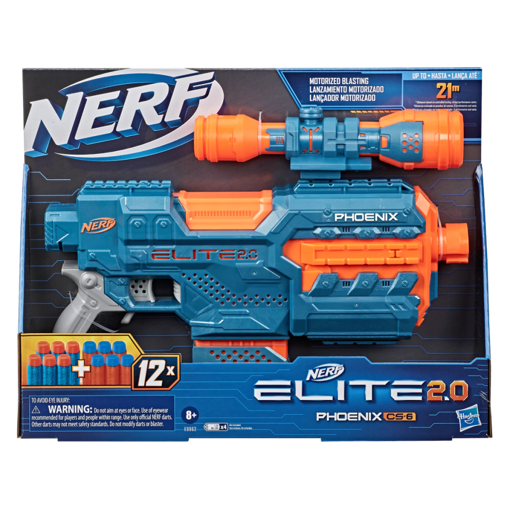 Com o Elite 2.0 Phoenix CS‑6, cada partida se torna mais emocionante, com potência, alcance e estilo para dominar o campo de batalha Nerf.