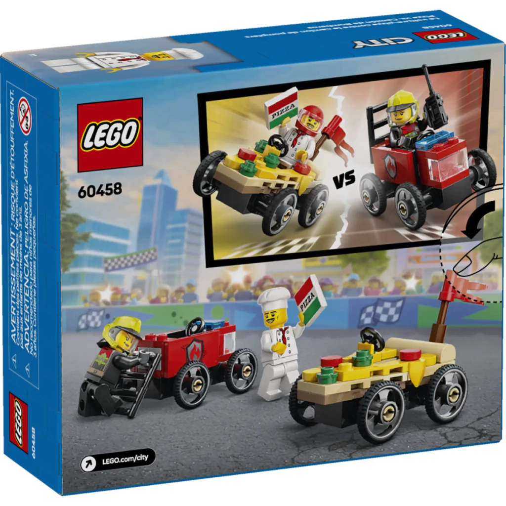 O LEGO City Carro de Pizza vs Caminhão de Bombeiros 60458 é um conjunto com 70 peças que traz dois carrinhos de rolimã em uma corrida divertida, um com tema de pizza e outro de bombeiro. Inclui minifiguras do chef de pizza e do bombeiro, perfeito para estimular a criatividade e coordenação motora em crianças a partir de 5 anos.