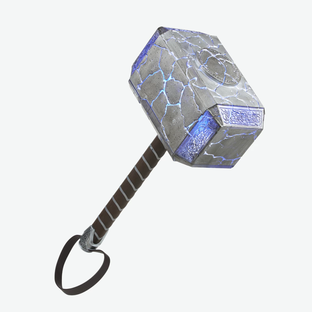 Com o Martelo Mjolnir Hasbro, a diversão é eletrizante: faça o som do trovão, acenda as luzes e sinta-se digno de empunhar o poder de Thor!