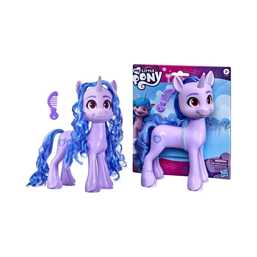 A My Little Pony Izzy Moonbow Grandes Amigos do Filme Hasbro F1777 encanta as crianças com seu visual mágico e cheio de brilho. Inspirada no sucesso do filme "My Little Pony: Nova Geração", a pônei Izzy Moonbow vem com uma aparência encantadora, corpo brilhante e cabelo longo para pentear, proporcionando horas de brincadeiras criativas. Um brinquedo que desperta a imaginação e promove o faz de conta com muito estilo e diversão.