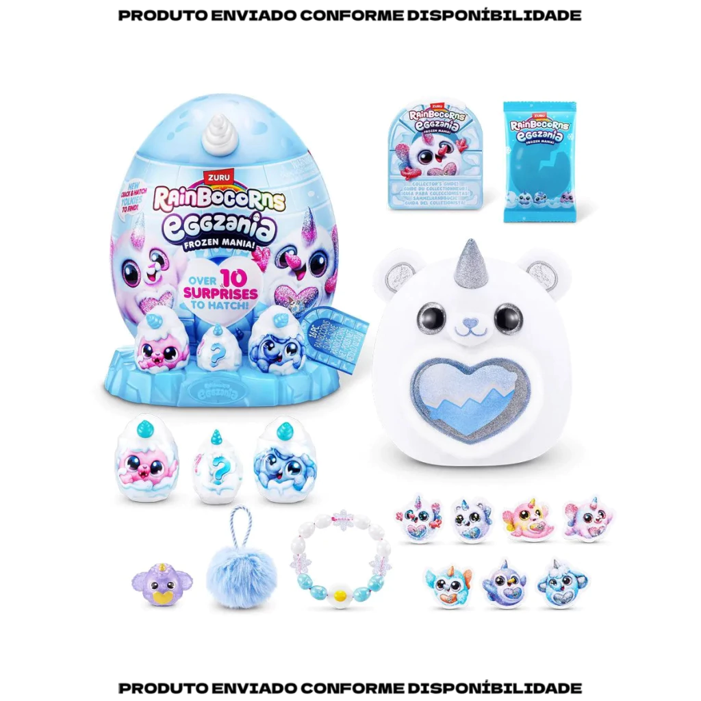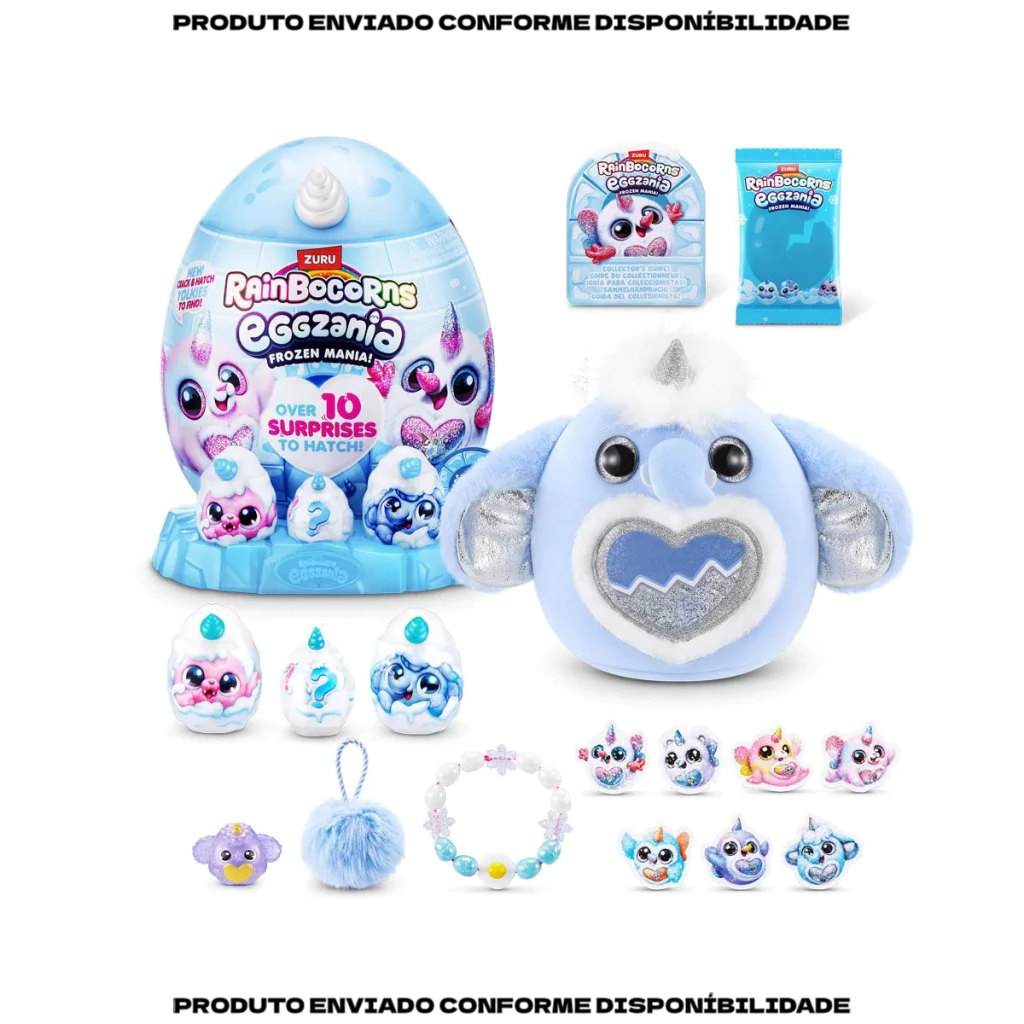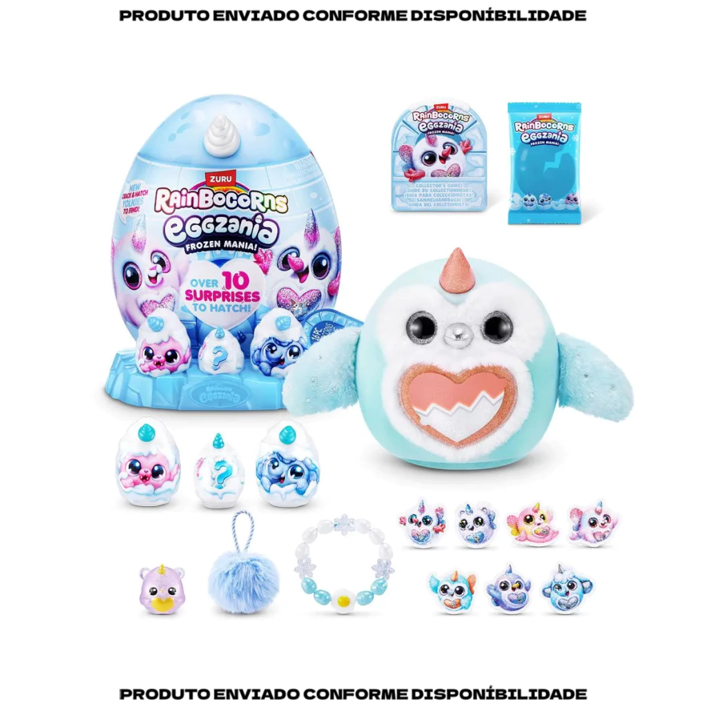 O Rainbocorns Eggzania Frozen Mania Azul é perfeito para surpreender e encantar, ideal para brincadeiras, presentear e colecionar com estilo congelante.